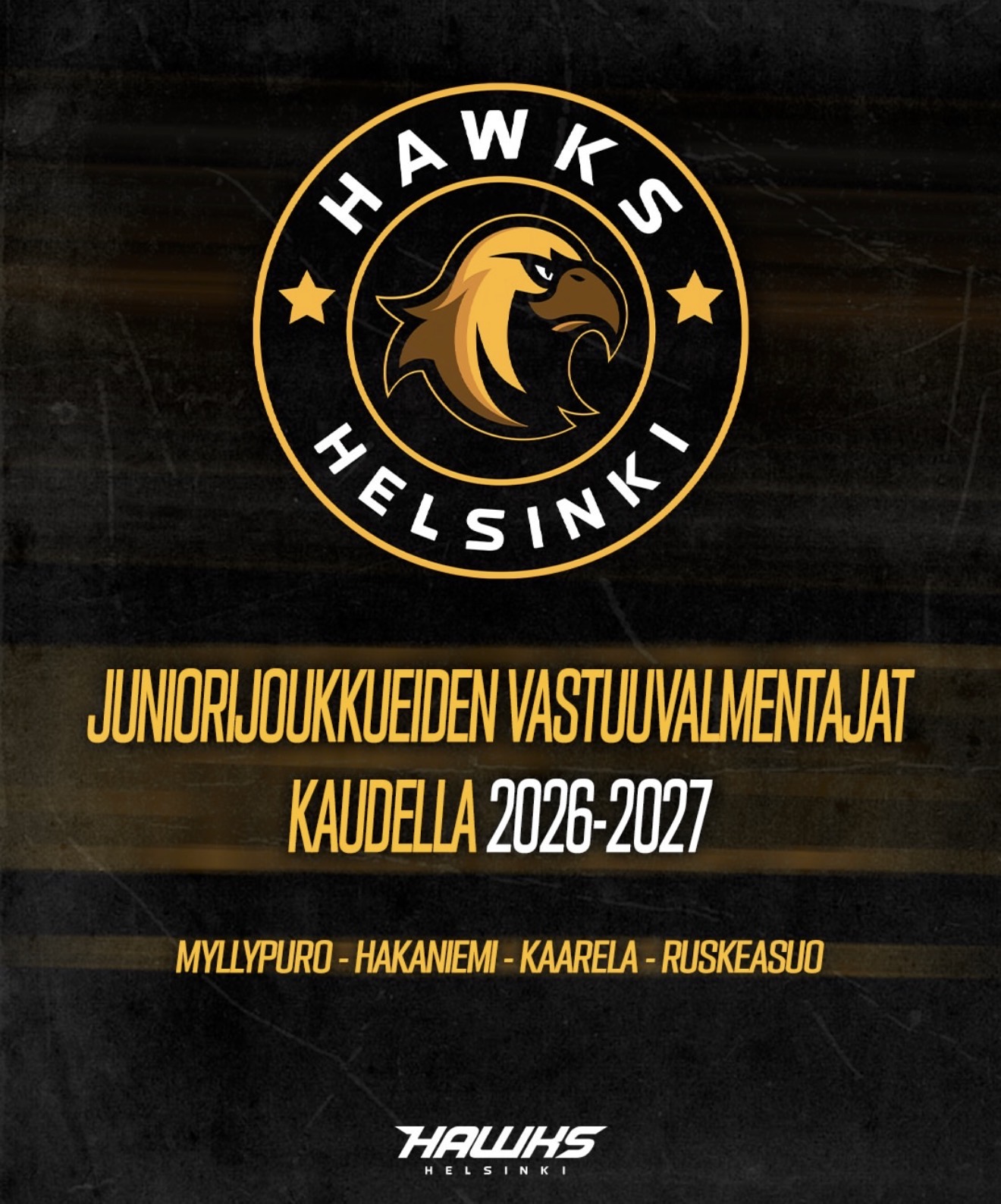 Haukkajunioreiden vastuuvalmentajat kaudelle 2026-2027 on nimetty.