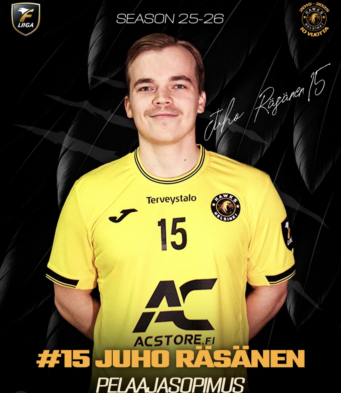 Juho tuo joukkueen alakertaan kokemusta, taitoa ja fyysisyyttä. Juho on aiemminkin edustanut Hawksia ja on harjoitellut koko alkukauden joukkueen mukana.